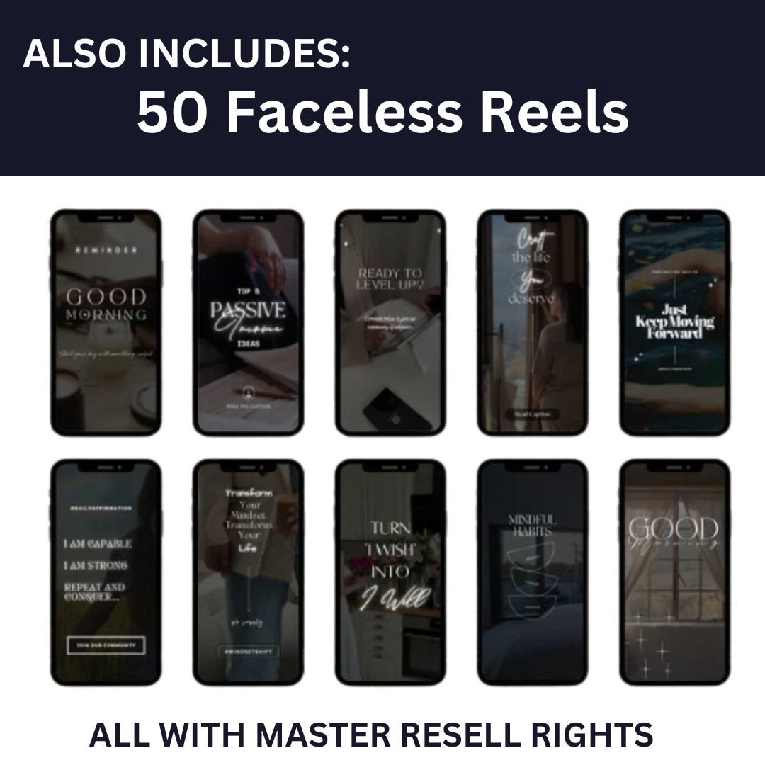 🔹 50 Faceless Instagram Reels & Hooks – High-quality videos with captions